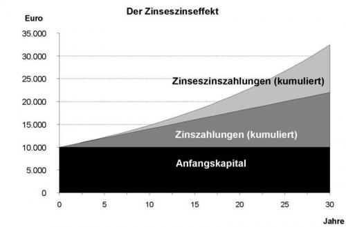So sparen Sie am Beginn Ihrer Kapitalanlage nicht nur eine Menge Geld, sondern im Laufe der Zeit wird über den Zinseszinseffekt aus diesem Vorteil ein Extra - Gewinn!